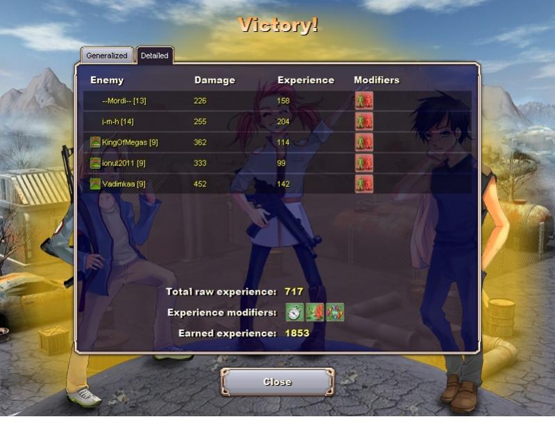 Its rare to see these results but when all my team got killed and I was facing a 4v1 situation, I used my cheat-to-win tactics to pull out an epic win. The stupid random team generator created a 5v3 matchup in which I was on the team with 3 players; B33_cheattowin (lvl 16 - thats me), Hasone2011 (lvl 14) and kiler2011 (lvl 19).