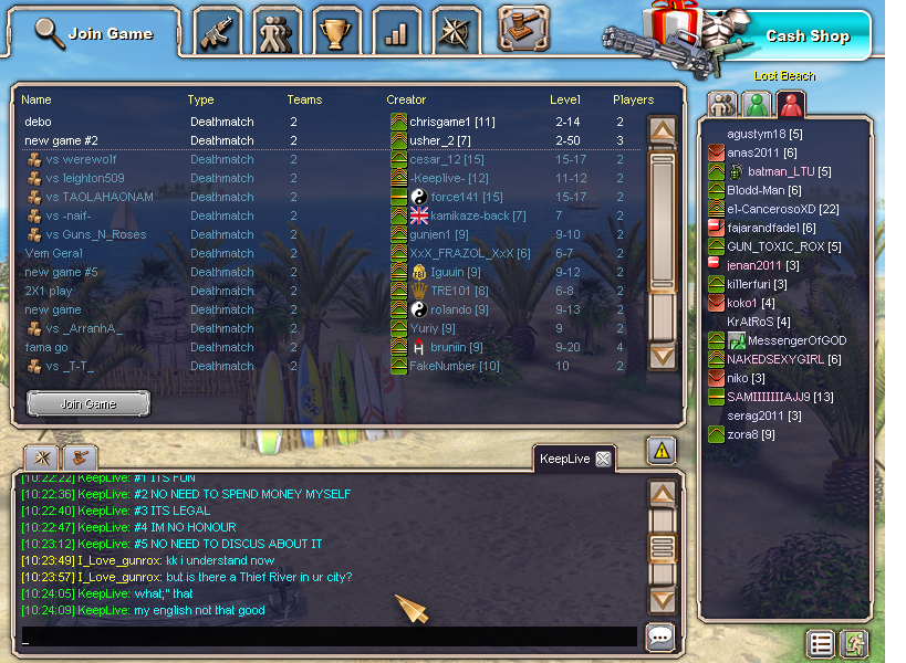 add keeplive to ur list ( sharp_killer = kane26) Habibu did for sure but not in abort game he knows where i am talking about