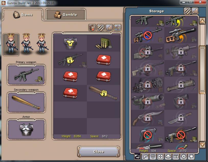 GUNROX is a hardcore old-school turn-based PvP game with full loot drop where you can take all of your opponent's equipment after killing him
