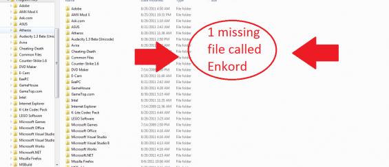 Hi im new here im looking to C:/Program Files on my notebook but Theres Enkord Folder is missing but how? Here look at this photo 1 files are missing called Enkord Please Solve this Problem Missing Folder☹