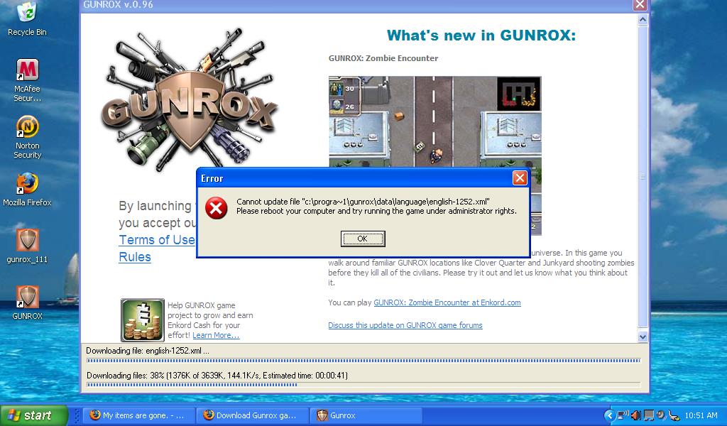 Ok I re-downloaded Gunrox and this crap happened: