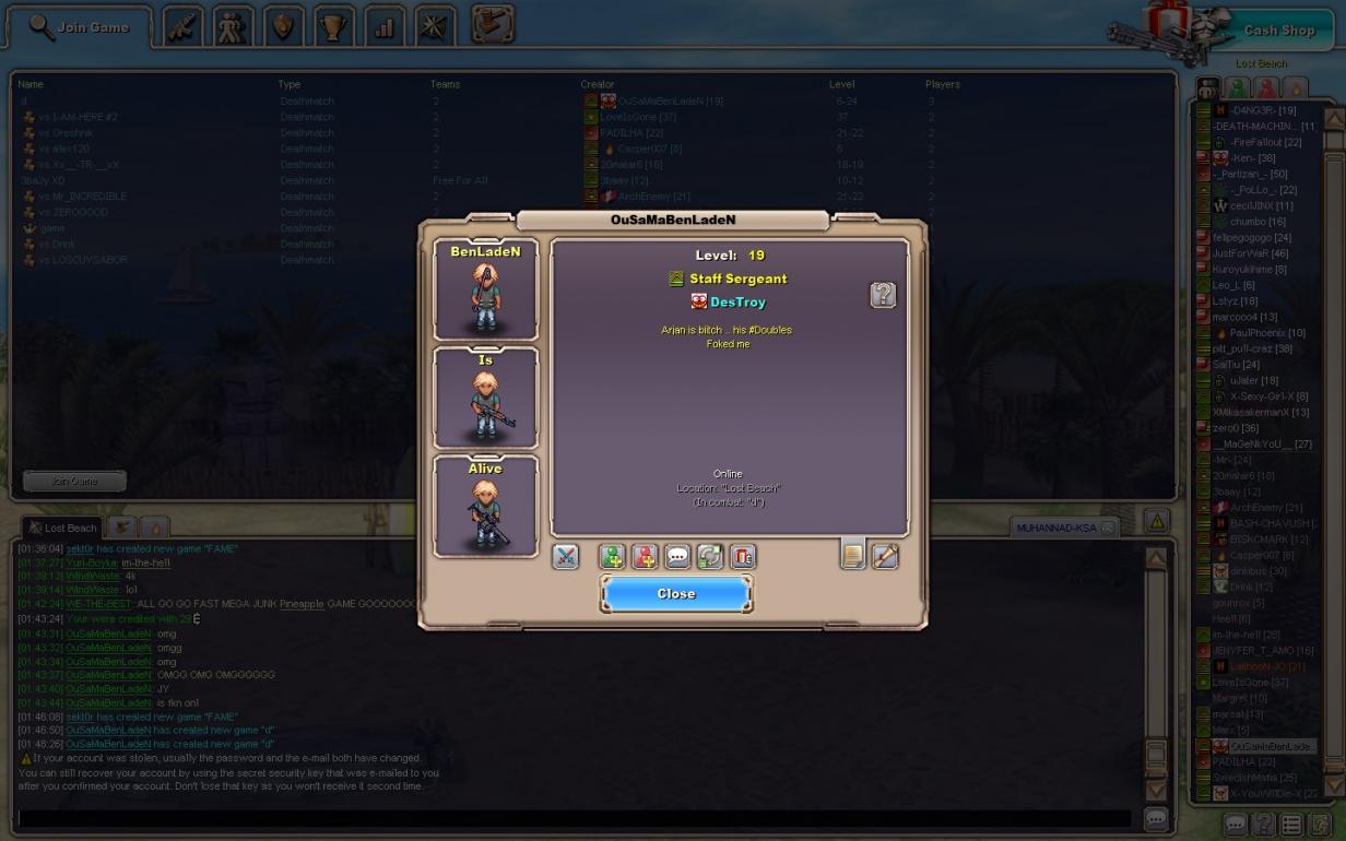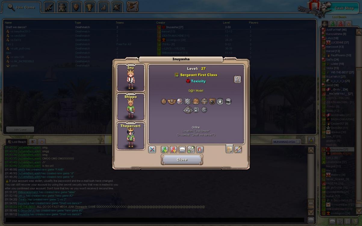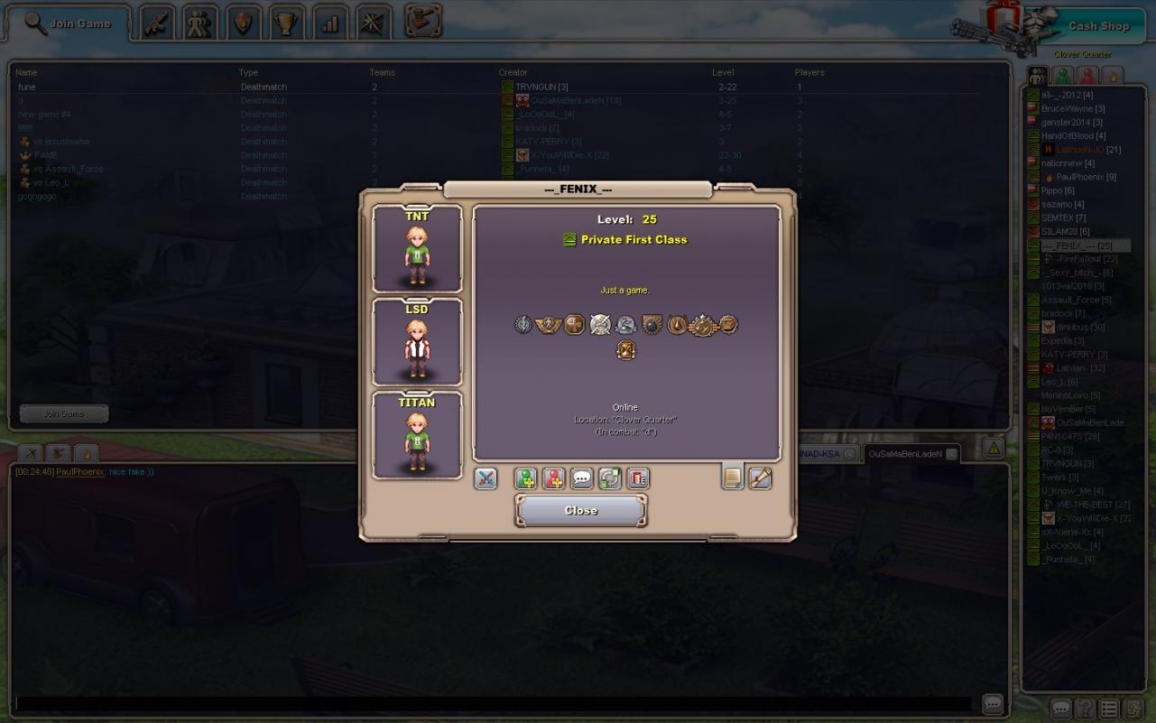And again there he is just making rooms and always has people to play with, they always higher level and yet he always with 0 units lost and as you can see, he came out showing 3 poison knifes, I wonder why..