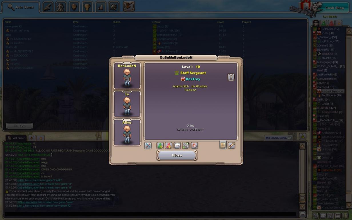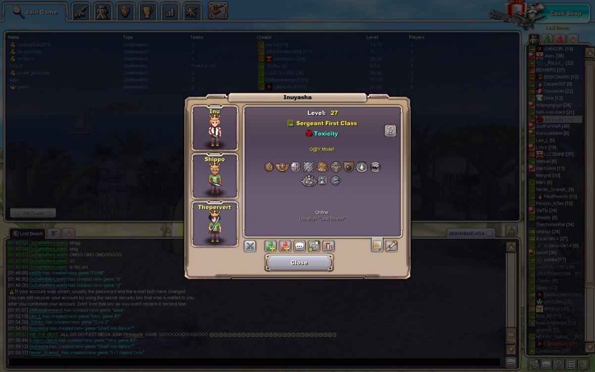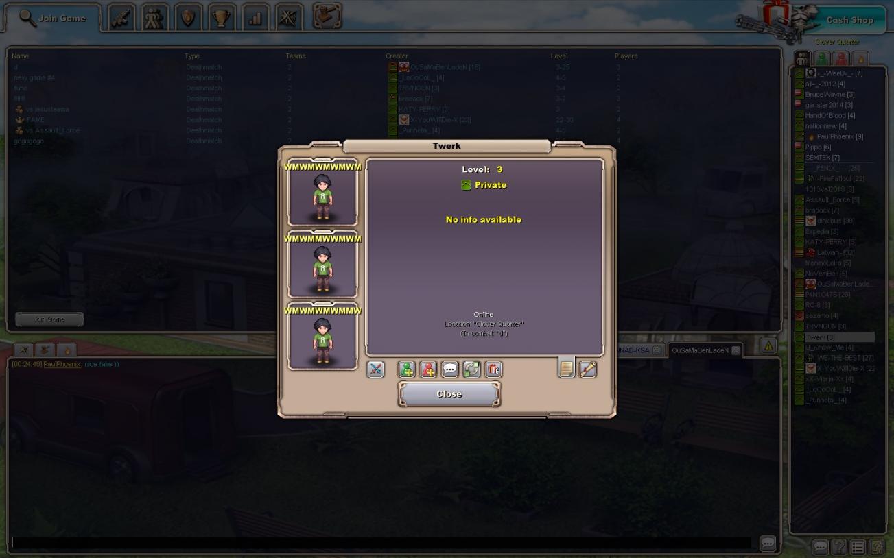 And again there he is just making rooms and always has people to play with, they always higher level and yet he always with 0 units lost and as you can see, he came out showing 3 poison knifes, I wonder why..