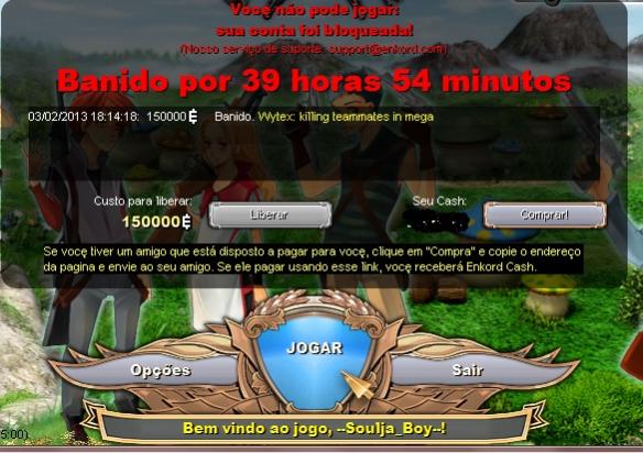 I was playing mega today (February 3, 2013) when a member of my team exited the game leaving us in 5x4, dai was that I reported in "call moderators" that there would be a fake on the team because we all shook on "abort" more the other team did not agree, so we needed to help us on the moderators, only time passed and no one miscarried, I just went to red zone and I committed suicide. Why not banish those not tightened abort? and what went quit game? we who are harmed by the fakers are guilty and innocent! I did not agree with the ban, now have a ban and have to wait 40 hrs to return to play Gunrox .. unfortunate๐๐๐๐๐gunrs.jpg