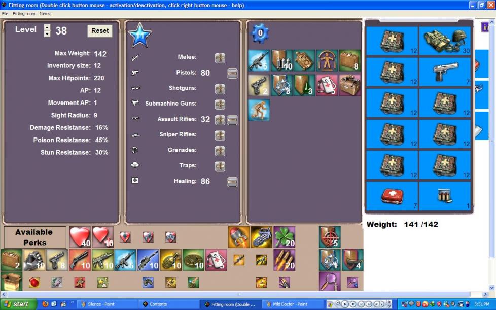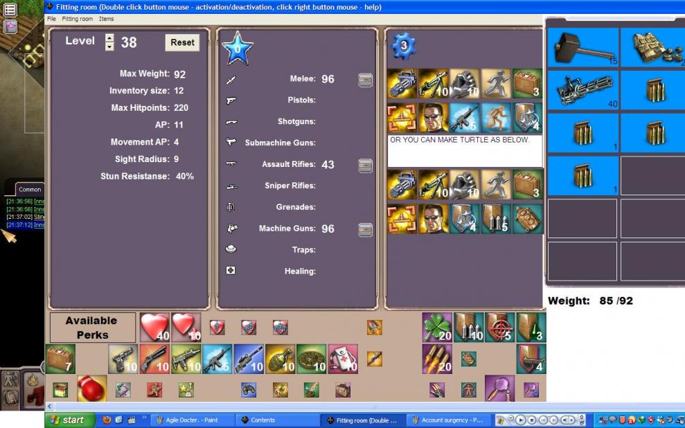 sig + meeles 14 ap doc 60 skill meds, hammer maybe turtle also