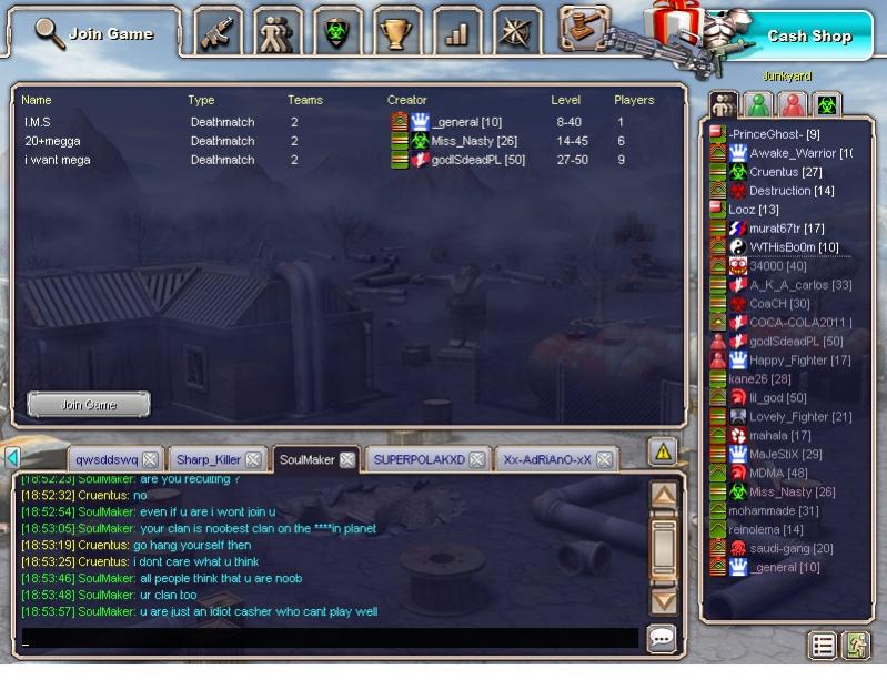 SOULMAKER: A level 3 who asks me if he can join my clan. When I refuse for the valid reason that he isn't even a first class private (minimum rank required to join a clan), he starts insulting me. I have the screenshot from him saying that I am "an idiot casher who can't play well." Well you animal, I beg to differ and the screenshots posted above prove otherwise. You sir, officially have egg on your face and your name is mud. You may as well call yourself Mudmaker from now on. (Its a joke, laugh you animals!!!)GodIsDead scared of Cruentus in Mega.jpg