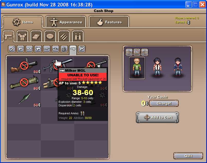 GUNROX is a hardcore old-school turn-based PvP game with full loot drop where you can take all of your opponent's equipment after killing him