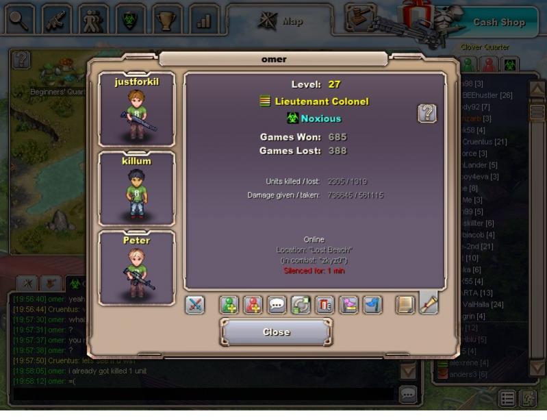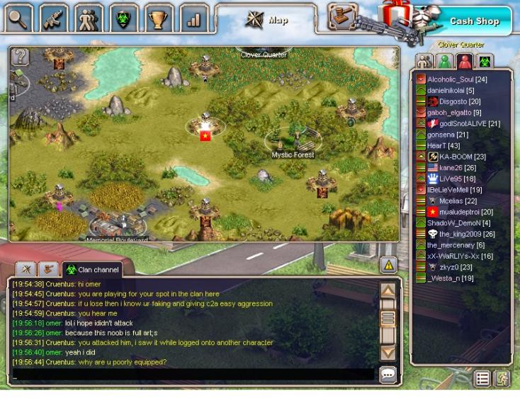 Today I caught Omar in a very suspicious aggresssion duel against Zykz0 from clan C2A. I saw that Omar (lvl 27) initiated the attack against Zykzo (lvl 23). Upon closer inspection of Omar's equipment, I noticed he appeared to not be wearing any armor and was poorly equipped - armed with a bernelli m4, a colt and some kind of grenade.