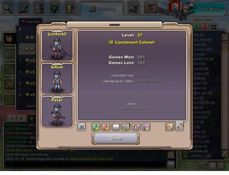 I logged onto Cruentus and confronted Omar with the fact that I am watching this match with interest and warned him that if he loses this, I will kick him from the clan. Not surprisingly, he lost the match and only recieved 32 aggression - a very poor effort when you have a 4 level advantage.