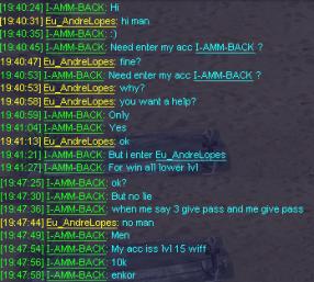 Player I-AMM-BACK is bothering me trying to steal my account and my items, below: print of our conversation, I hope the moderators Gunrox someone take action on this case.
