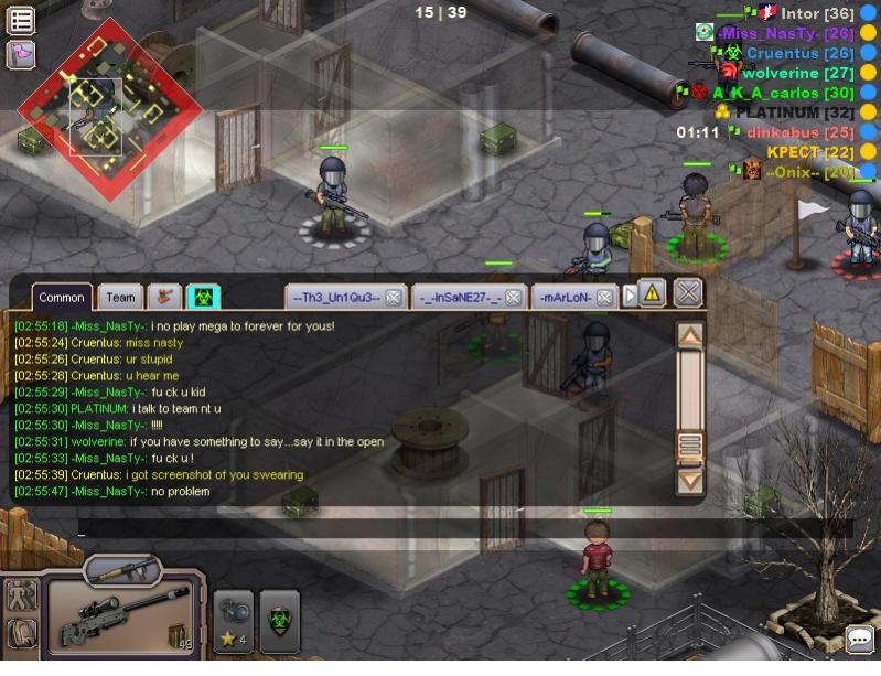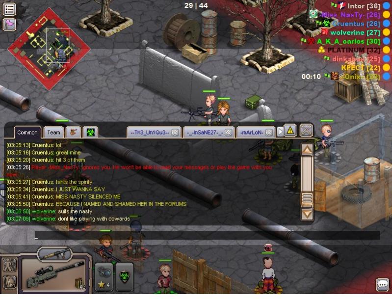 Gunrox is like a jungle out there. You make one mistake and you are dead. All the other animals in the jungle are going to take advantage of your one mistake and savage upon you like the beasts they are. I do feel sorry for -Miss_Nasty- but they way she reacted like an animal instead of a human being made me show no remorse for putting a rocket into her carcass.Miss Nasty ignoring me.jpg